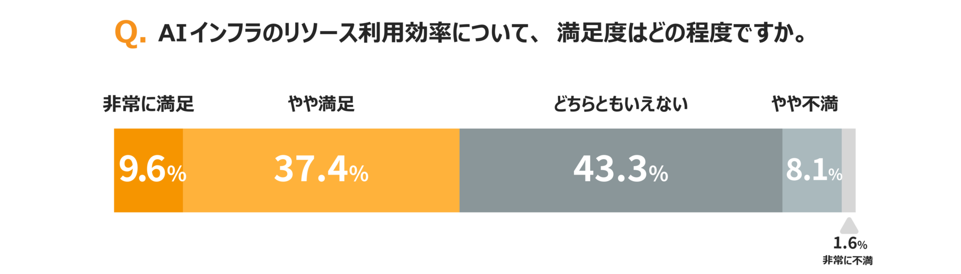 - 運用面では半数以上がAIインフラのリソース効率に満足していないと回答。