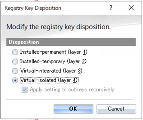 一部のレジストリキーをLayer4(Recursive)に変更します。