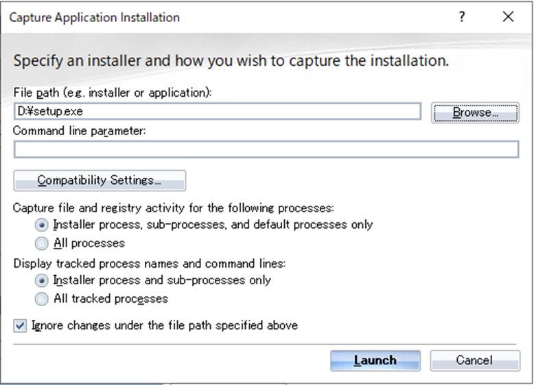 Captureアイコンをクリックし、setup.exeを選択しMicrosoft Office 2013のインストールをキャプチャします。