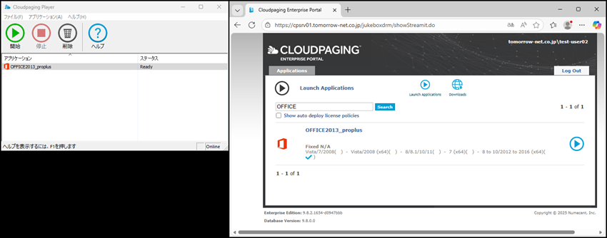 - Cloudpaing Player(ver 9.6) : クライアント端末で仮想化されたアプリケーションを実行