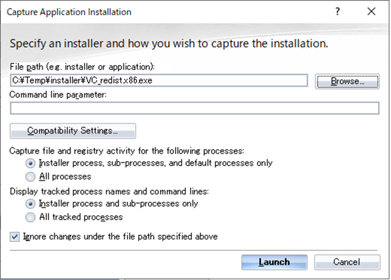 Captureアイコンをクリックし、VC_redist.x86.exeを選択しVisual C++ 再頒布可能パッケージのインストールをキャプチャします。