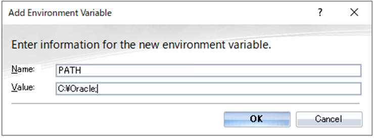 まずは、ローカルPCのシステム環境変数のPATHにC:\Oracleを追加設定します。