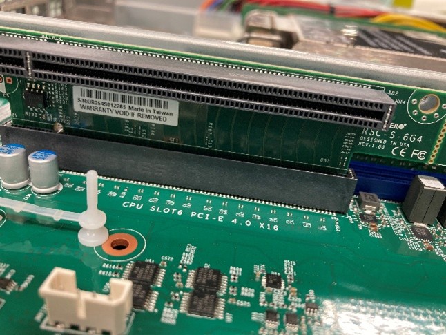 NICなどの拡張カードについて、搭載位置やRevを確認します。カードが半抜けの状態だと検査の段階で部材が正しく認識されない可能性があるため、注意深く確認します。接続端子部分の破損がないかも見ていきます。