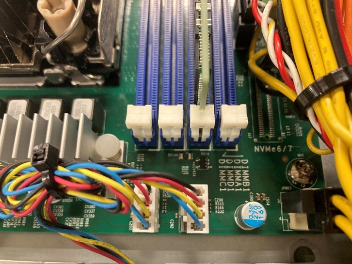 メモリスロットのレバーが下がった状態の物がないかを確認し、しっかりとロックします。
