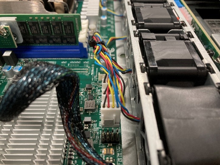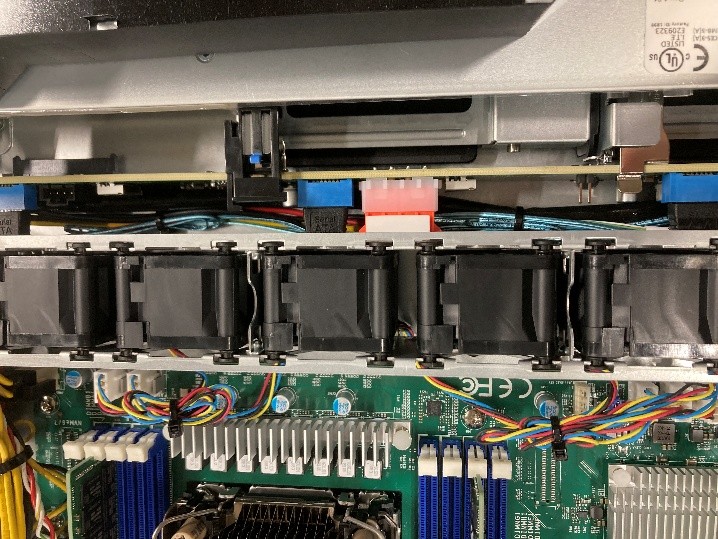 ケーブルの巻き込みを防ぐためFAN付近のケーブル配線が接触していないかを確認します。FANの固定がしっかりされているかも確認します。