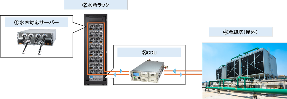 導入可能です。近年はCDU(冷却水分配ユニット)を活用し、既存設備に後付けできる水冷ソリューションも増えています。